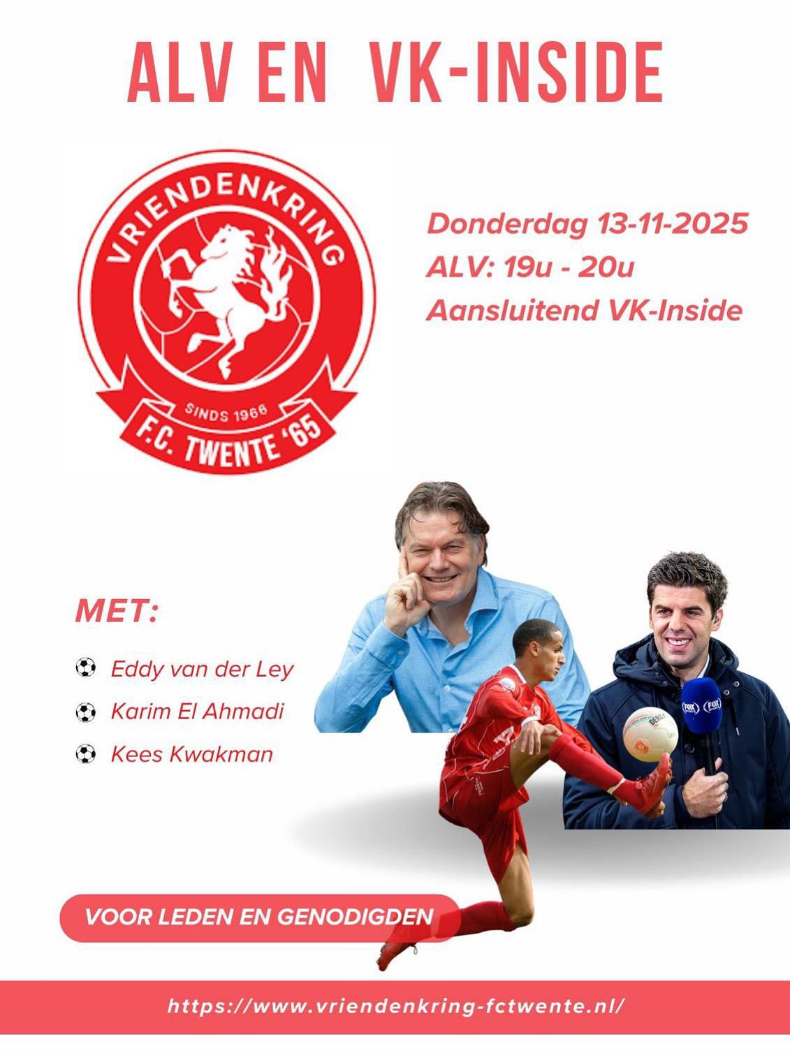 Vriendenkring Inside, de talkshow die traditiegetrouw volgt op de ALV, kent ook dit jaar weer een interessante line-up. Presentator Eddy van der Ley ontvangt in het Hatrans Home op donderdag 13 november ex-voetballers en huidige analisten Karim El Ahmadi en Kees Kwakman.