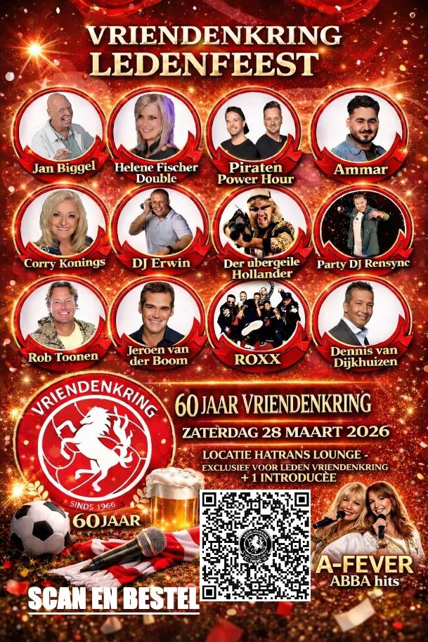 Behalve op ons feest zien wij u graag zaterdag rondom de wedstrijd met sc Heerenveen in ons Hatrans Home.